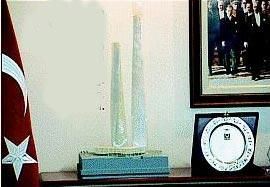 İstanbul Maslak’ta yapılması planlanan ve ‘Dubai Towers’ adı verilen 300 metrelik burgu kulelerin maketi Başbakan Tayyip Erdoğan’ın AKP Genel Merkezi’ndeki makam odasında ortaya çıktı. Hatta Kule maketi tozlanmasın diye üzeri naylonla kaplanmış.