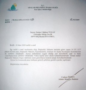 3- Adalar ‘ESKI’ Belediye Baskani Coskun Ozden: “Baskanlik makami emrinde gorev yapan34 ZV 5377 plakali hizmet araci, […] yolcu tasima araci olarak kullanilmamaktadir…” YALANI!
