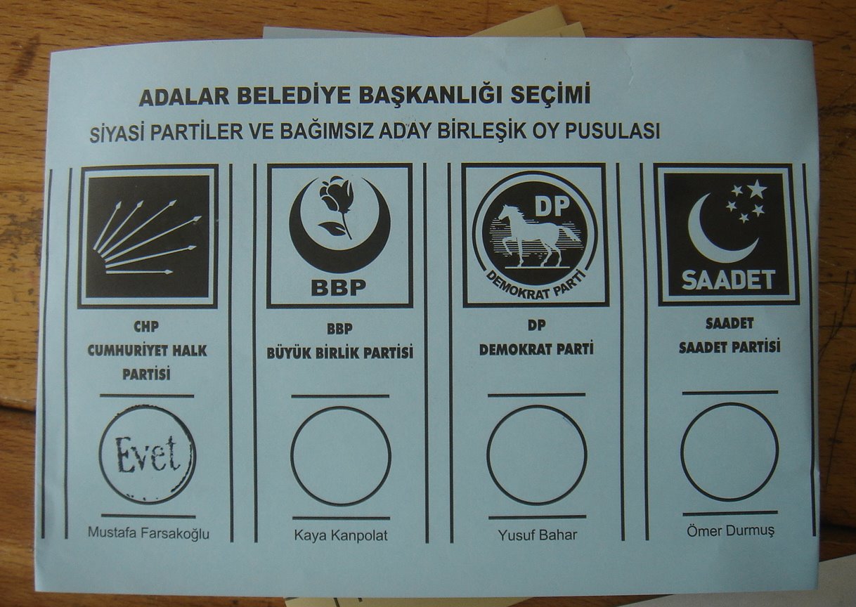 2007’deki son genel secimlerde CHP, en yakin rakibi AKP’ye neredeyse iki misli fark atmisti. CHP bu secimlerde, aldigi bu oy oraninin yani sira, Adalar’da 1996-2001 yillari arasinda kaymakamlik yapmis olan ada sevdalisi adayi Dr. Mustafa Farsakoglu’na guveniyor. AKP’nin en buyuk kozu ise, 2004’te yapilan yerel secimlerde ANAP’tan katilarak aldigi yuzde 54.54 oy oraniyla rakiplerine ezici bir fark atan ve halen belediye baskani olan Coskun Ozden.