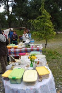 Potlac yerine geldigimizde once bir halka olduk ve kisaca birbirimizi tanidik. Arkasindan enfes yemeklerimizi tattik borekler, zeytinyaglilar, pastalar herbiri harikaydi.