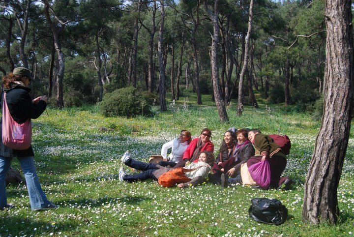 Iskelede Aysen gurumuz bizi karsiladi. Zira annesiyle sabahtan Ada’ya gelip kahvalti keyfi yapmisti, havanin soguk ve yagisli olmasi ihtimaline karsi bulustugumuz kahvehaneye el faro’yu da ayarlamisti bize. Bizden once Bostanci ve Kabatas vapuruyla dostlarimizi karsilamis ve kahvehanede toplanmislardi ama kahvehaneyeye sigamazdi potlacimiz. Zaten hava da duzelmisti. Kisa bir istisare yapip potlac yeri kesfine karar verdik. Can arkadas Ada’yi bilen dostlarindan Cam Limani adresini alinca hemen oncu imecanlar potlac yeri bakmaya gitti. Biz de kahvehanede tanisip cay icip sohbet ederken haber geldi. Potlac yeri bulunmustu ve hazirlanmisti, arkasindan yuruyuse gectik.