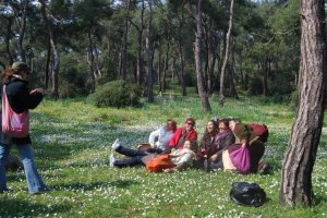 Baharin coskusunu hissedebildigimiz bir ortamda, cevremizde yaban atlari, kuslar, cicekler, agaclar ve deniz nefisti.