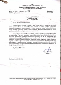 ISTANBUL 5. NUMARALI KULTUR VE TABIAT VARLIKLARINI KORUMA KURULU MUDURLUGU’ne,
