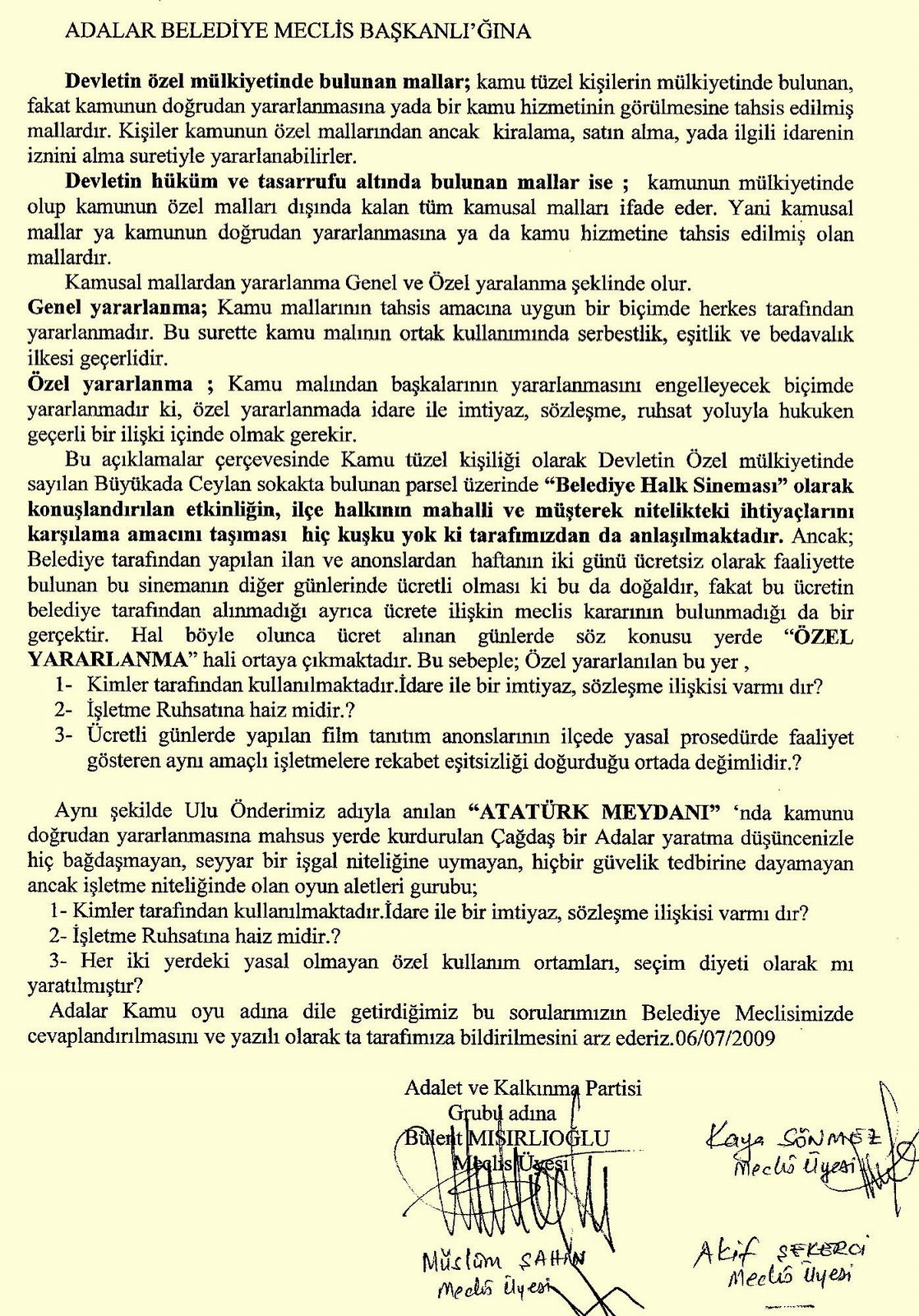 2- Bulent Misirlioglu: “Adalar Kent Konseyi Genel Kurulu’nda, Danistay 8.inci Dairesi’nin 22.05.2008 tarih, 2007/1280 Esas, 2008/3744 Karar sayili karariyla sivil insiyatifin guclendirilmesi amaciyla aldigi Genel Meclis temsil yetkilerinin daraltilmasi icin bu konudaki bazi yonetmelik maddelerinin iptal kararina ragmen ADALAR KENT KONSEYI BASKANLIGI icin aday olan Belediye Baskani dr. Mustafa Farsakoglu’nun yapilan secimlerde 15 oy alarak secimi kaybettigini, 44 oy alan Adalar Su Sporlari Kulubu dernegi baskani Ali Fuat TOLGA’nin ADALAR KENT KONSEYI baskanligina secilmis oldugunu BILIYOR MUYDUNUZ?”