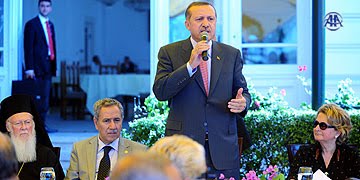 Basbakan Erdogan, Buyukada Anadolu Kulubu’nde Adalar’daki cemaat vakiflari, bazi sivil toplum kuruluslari ve Adalar Vakfi isbirligiyle organize edilen yemekte, diger dinlerin liderleri ve temsilcileriyle bir araya geldi.