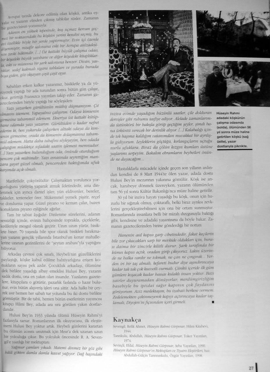(der. Selmin Kurç), Yazarlar Mekânlar ve İstanbul Bir “Adalı”: Hüseyin Rahmi, İstanbul Dergisi (…)26-27.