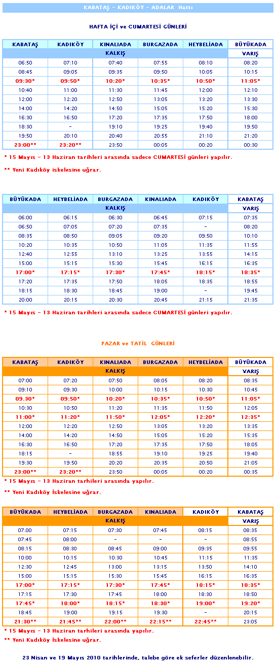 Burgazada Bülent 311 81 15, Büyükada Merkez 382 63 92, Heybeliada Hayat 351 99 07, Kınalıada Deniz 381 51 81