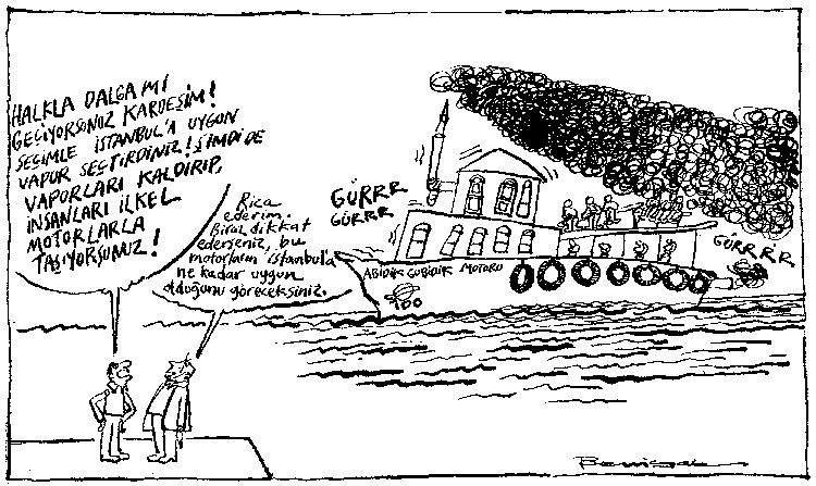5- “Halkla dalga mı geçiyorsunuz kardeşim! Seçimle İstanbul’a uygun [!?] vapur seçtirdiniz! Şimdi de vapurları kaldırıp, insanları ilkel motorlarla taşıyorsunuz!”