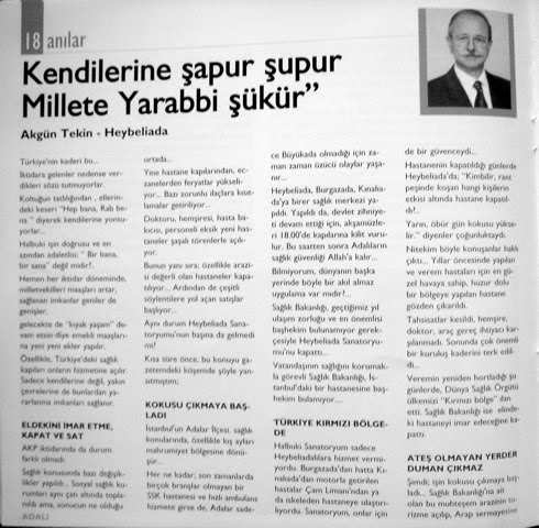 Akgün Tekin, “Kendilerine şapur şupur Millete Yarabbi şükür”, Adalı Dergisi (Şubat 2007)18-19: