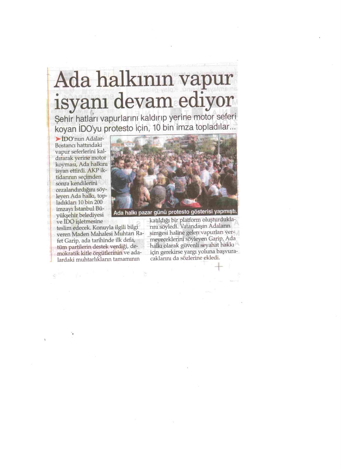 25 Ekim 2009 Pazar günü “VAPURLARIMIZI GERİ İSTİYORUZ” protesto gösterilerimiz ses getirdi, birçok gazetede haber olarak