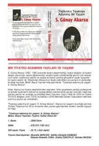 “Tiyatroya adanmış bir yaşam: S. Günay Akarsu”. Mitos- Boyut Yayınları Tiyatro/ Kültür Dizisi:93