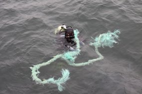 Adalar ile anakara ve adaların kendi aralarında yük taşıyan Adalar Belediyesi’ne ait çıkarma gemisinin pervanesine dolanarak motorunu bozan gemi halatları aynı zamanda dalgıç olan Başkan Yardımcısı A. Ercan Akpolat tarafından temizlendi.