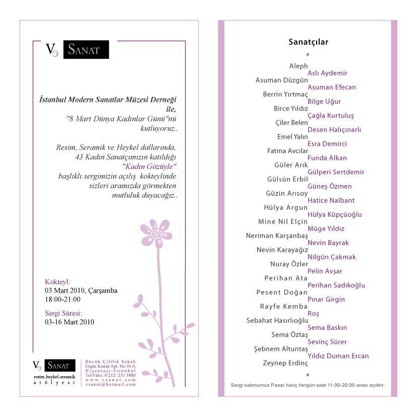 Subject: FW: V Sanat “Kadın Gözüyle” Karma Sergi Davetiyesi