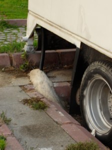 Hareket kabiliyetine sahib bir aracın oraya nasıl da çivilendiğinin, sökülüp atılamayacağının isbatı da yine ekli fotoğraflarda görülmektedir. Kamyon yavrusuna yer altından devamlı enerji takviyesi yapan hatırı sayılır bir kablonun ulaştığından da ayrıca hinliğin şekl-i şemalinin ne kertede olduğu anlaşılmaktadır.