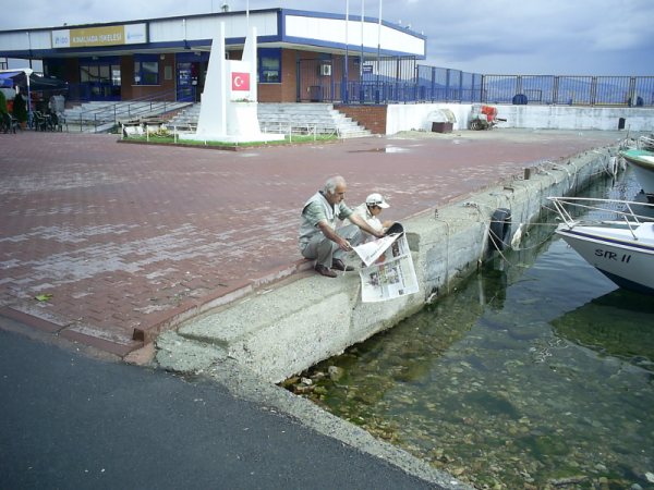 Andan Kızıl ada (Büyük ada) ya vardık. İki yüz kadar Rum haneleri vardır. Dağları kızıl olduğundan buna Kızıl ada derler. Kilisesi, bağ ve bağçeleri, dört bir tarafında balık dalyanları vardır.