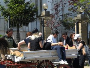Umarım yük arabasını çeken o ağır işçi, güzel at üzerindeki 4 kişi ve at arabacısı sürücüsünü yarı yolda bırakıp yola devam etmemiştir. Zaten edemez de asansör bile 4 kişiden fazla binilmez diyor ve stop ediyor. Üstüne üstlük faytonlarda bile iki at varken yük arabasında tek at var.