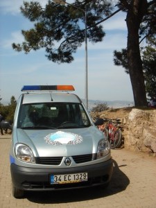 Resim 3: Adalar Belediyesi Zabıta Amirliği aracının Büyükada Aya Yorgi’deki lokantaya yemeğe çıkardığı zevatın yemeğinin bitmesini beklerken park halindeki resmidir, 5.5.2010 15:27.