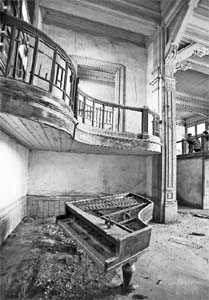 Bir kenarda ise piyano duruyordu. Üst kısmı kırılmıştı. İnce demir yayları açığa çıkmıştı. Binanın bekçisi Erol, ‘Tuşları nerede?’ sorumuzu şöyle cevapladı: “Ben burada 25 yıldır yaşıyorum, tuşları o zaman da yoktu…” Demek ki daha önce kırmışlardı.