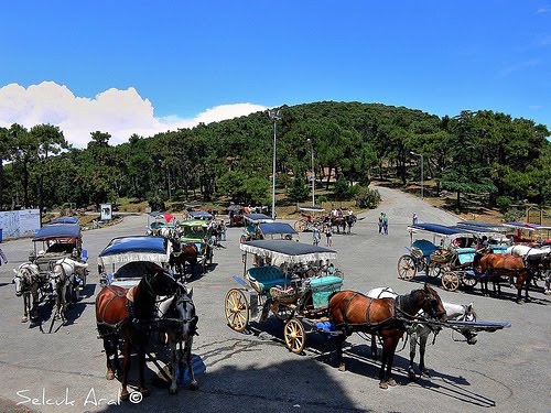 Genel olarak ziyaretcilerin cogu iskele yakininda (<<<-vapurdan cikar cikmaz karsiniza gelen kücük saat kulesinin sol tarafinda bulunan <<<- zaten sira bekleyenlerin teskil ettikleri uzun kuyruk gözünüze carpar) arabacilarin tamaminin sira bekledikleri meydandan kalkan faytonlarla (<<<- tarifeye göre ücreti 20 TL <<<- 4 kisiye kadar binebilir) Lunapark meydanina gidilir.