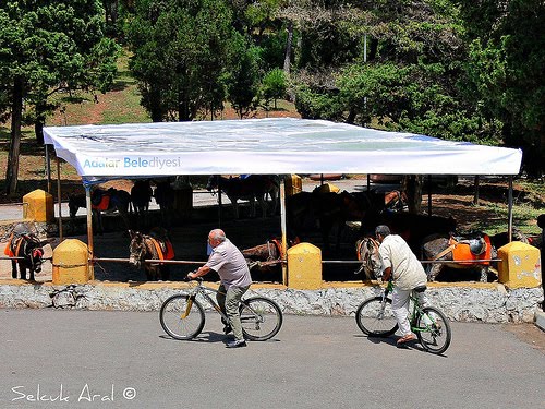 Iste artik buradan itibaren (<<<- yani fayton’la da, yürüyerek de gelseniz farketmez) 800 metrelik yokusu cikmanin iki yolu vardir. Ya yolunuza devam ederek, oflaya-puflaya (<<<- aslinda herkes bunu yapar) yukari tirmanmak yahutta sizi tasimasi icin toplu halde sira bekleyen eseklerden birisini kiralamak.