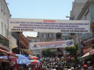 2- Adalar Belediyesi-Adalar Kaymakamlığı: “Duyuru! 25.12.2009 tarih 2232 sayılı Koruma Kurulu kararıyla Adalar’da sağlık raporuna sahip vatandaşların dışında özel akülü araç kullanımı yasaklanmıştır. Vatandaşlarımızın sağlık raporlarını Adalar Belediyesi’ne iletmesi zorunludur.” Âlâ! Vâlâ! Amma…
