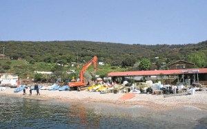 Çam Limanı Halk Plajı’ndaki kaçak yapılar yıkıldı.