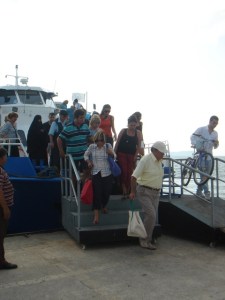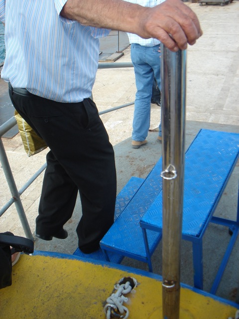 Mopur iskeleye baştan kara yanaşmaktayken merdiveni, iskeledeki merdiven ve de rampayla hizalanıp kavuşturulmakta…