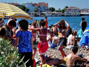 Sıcaktan bunalan, çoğu günübirlikçi insanlar denize giriyor. (Resim 1)