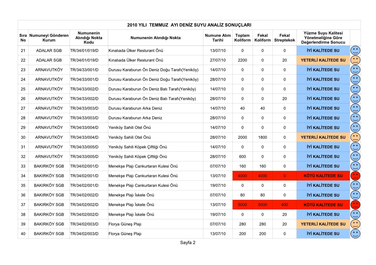 7- Temmuz 2010’a dair Deniz Suyu Analiz Sonuçları’ndan, Adalar’da 13 ve 27/7/2010 tarihinde ölçümleme yapıldığı ve dahi yalnızca Naki Bey Plajı’nda ‘kötü kalitede su’ tespit olunmuş olduğu anlaşılmakta dolayısıyla acep bu ölçümler uyarınca mı yasak ilan edilmiş yoksa 6.8.2010 tarihli haberde aynı gün veya 5 Ağustos’tan bahis olunduğundandır ki “Adalar Kaymakamlığı, İl Sağlık Müdürlüğü’nün Pendik Halk Sağlığı laboratuvarlarında yaptırdığı mikrobiyolojik analiz sonuçları”nın Ağustos 2010’a ait olduğu akla gelmekte… Tam bir muamma! Oysa…