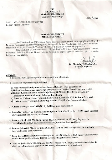 Bu sebeble meclis üyeleri olarak tarafımıza imza mukabili verilmiş resmi gündemi size gönderiyorum.