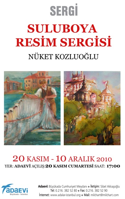İLİŞİKTE ADAEVİ’NDE 20 KASIM CUMARTESİ GÜNÜ SAAT 17.00 DE AÇILIŞINI YAPACAĞIMIZ NÜKET KOZLUOĞLU SULUBOYA RESİM SERGİSİ’NİN DAVETİYESİNİ GÖRECEKSİNİZ.SERGİ 20 GÜN SÜRE İLE AÇIK KALACAK.