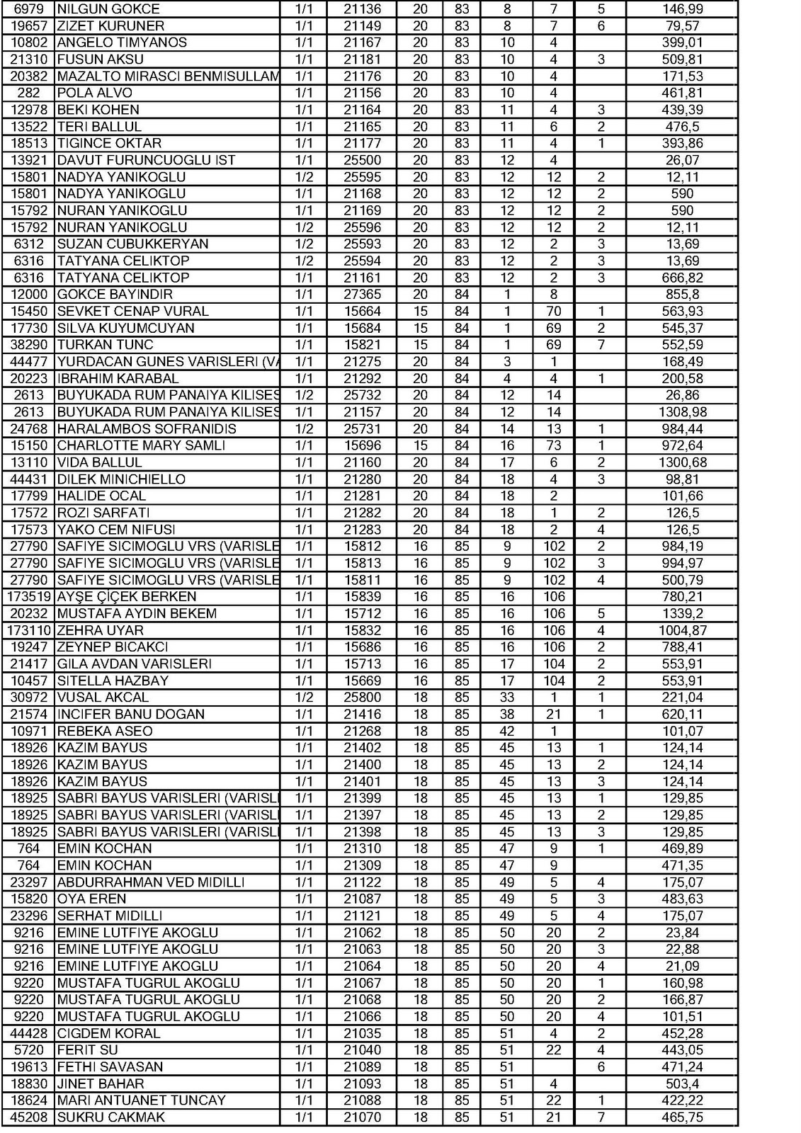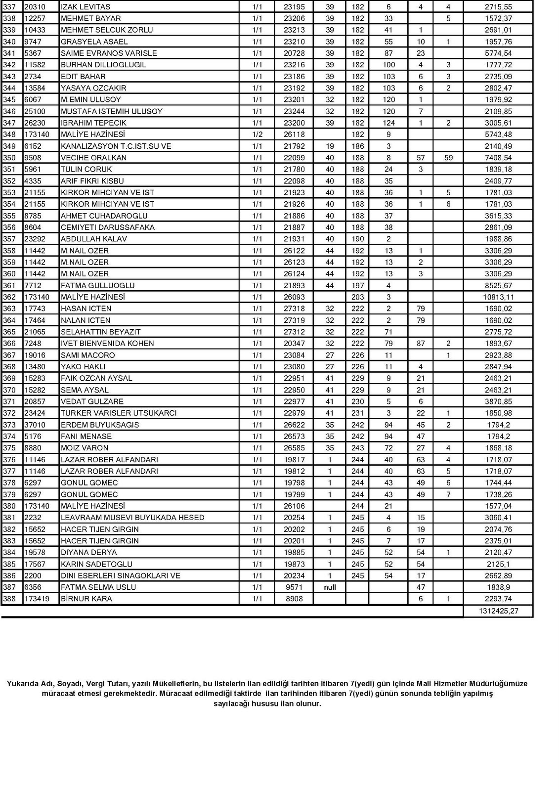 7- Tebliğ Edilemeyen Yol Harcamalarına Katılım Payı Duyurusu… Adalar Belediyesi hoparlöründen duyurulur!…