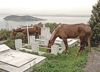 Bir zamanlar Heybeliada Deniz Harp Okulu onunde yer alan Ferruh Basaga’nin Preveze Savasi’ni anlatan mozaik panosunun icler acisi hikayesi… Ada sahillerine adeta uzaydan dusmus o sakalet binanin kapisinin uzerine bir kopyasini koymuslar simdilerde… Herhalde gunah cikartmak uzere! (Fotograf: Heybeliada, 19/03/2009 10:17)