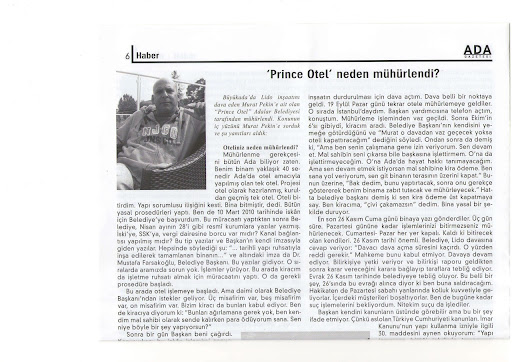 “Prince Otel Neden Mühürlendi?”, Ada Gazetesi ? (?-?.12.2010)6-7.