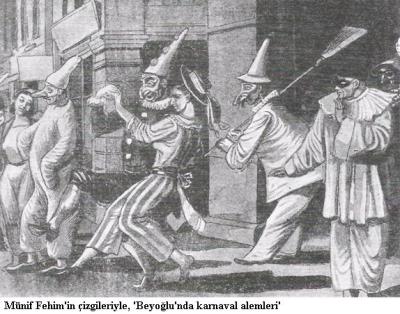 “Karnaval mevsimi girdi mi Beyoğlu çalkala nıp durur, maskaralar ortalık ta dolaşır, geceleri Cadde-i Kebir’den sokaklara taşarlar dı”