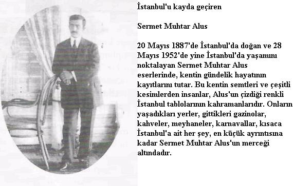 Bir İstanbul âşığı olan ya zar Sermet Muhtar Alus; eser lerinde, Cumhuriyet sonrası çok hızlı bir de ğişim geçiren bu kentin insanlarını, cadde ve sokakları nı, köşk ve yalılarını, mesire ve bayram yerlerini, geleneklerini ve eğlencelerini anlatmış; İstanbul’daki ‘gün delik hayatı’ yazılarında ölümsüzleştirmişti.