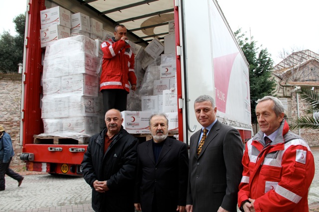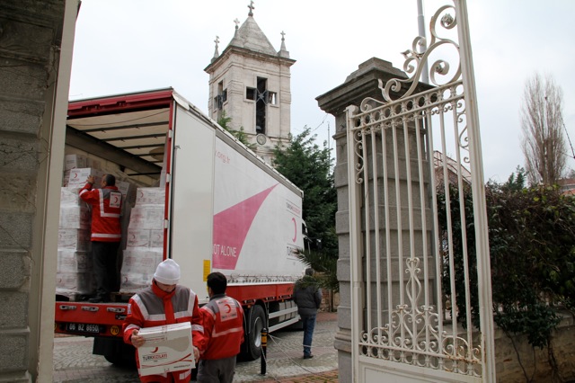 Türk Kızılayı Genel Başkanı Tekin Küçükali yaptığı konuşmada, Kızılay’ın ilke olarak din, dil, mezhep farkı gözetmeksizin yardıma muhtaç insanların kara gün dostu olduğunu ifade ederek 2 tır dolsu 1000 koli gıda ve 300 koli kışlık giysi ve ayakkabı, yılbaşı günü, kayıtlı fakirlere dağıtılmaya başlandı.