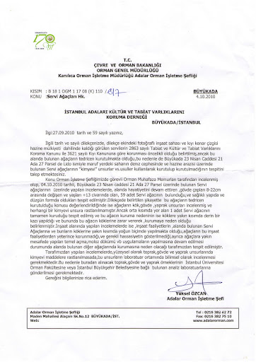 1) 04.10.2010/617 sayılı Adalar Orman İşletme Şefliği yazısı