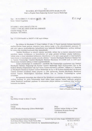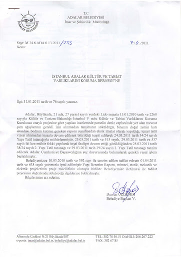 3- İAKTVKD: “Adalar Belediyesi’nin cevaplarından; Ada sahillerinde bir kara leke gibi kalmaması icab eden meş’um inşaatın [Lido] kaçak inşaat durumunda olduğu resmen anlaşılmaktadır!…”