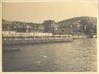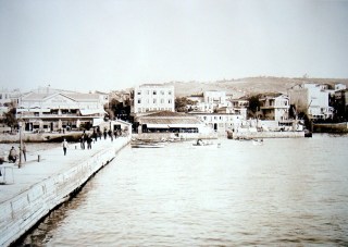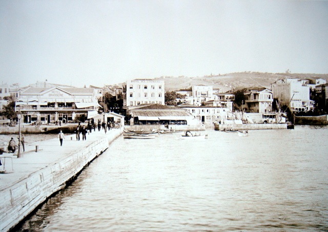 Fotoğrafta da görüldüğü gibi sözkonusu mahal iskelenin sağında —arasına deniz giren— deniz üstüne iki adet çıkma/dolgu bloktan sağdaki olmalı! Demekki vaktiyle Sinosoğlu Simonaki’nin zevcesinin tasarrufunda bir havuzmuş, 1914 Temmuzu’nda doldurulup solundakiyle birleştirilmek suretiyle yekpare bir satıh haline getirilerek üzerine de bina mı [Belediye Gazinosu] kondurulmuş?!…