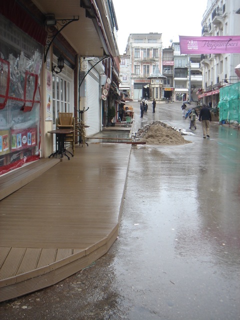 3- Geçen senelerde fayans döşenip yeşil halılar (!) serilen kaldırımlara, bu sene plastik döşendi!…