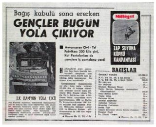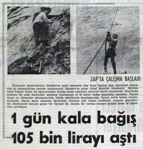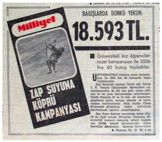 Diğer yanda ise ‘kapitalizm/sosyalizm’ tartışmaları çerçevesinde, ülkenin doğusundaki yaşama biçimine, orada feodal bir yaşantının olup olmadığına duyulan merak söz konusudur. Tüm bunlar, gençleri sembolik bir eylem etrafında biraya getirir: ‘Boğaz’a değil Zap’a Köprü’. Hep birlikte, Zap nehri üzerine bir asma köprü inşa etmeye başlarlar. Bu çabaya ulusal gazetelerden biri olan Milliyet de katılır. Bir yardım kampanyası açılır. Kısa sürede inşası tamamlanan köprüye ‘Devrimci Gençlik Köprüsü’ adı verilir.
