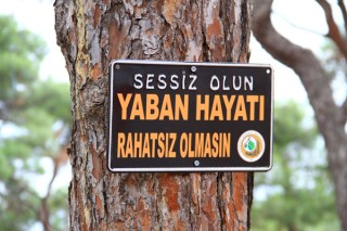 Plaka-tabelalarla ada ormanlarının yaban hayatına da dikkat çekilerek hayvanları ürkütecek gürültü kirliliğine karşı vatandaşlar uyarılıyor.