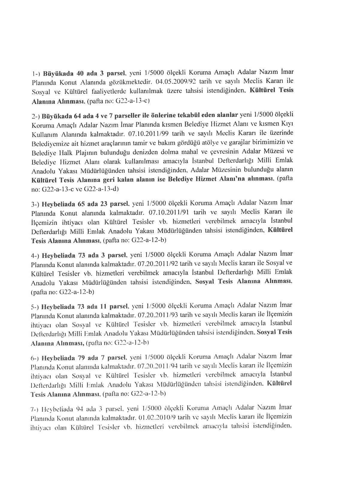 16.06.2011 günlü İstanbul Büyükşehir Belediye Meclisi’nde görüşülerek kabul edilip 21.10.2011 tarihinde askıya çıkarılan Adalar 1/5000’lik Koruma Amaçlı Nazım İmar Planları [http://adalarkentkonseyi.com/page10.html]21.11.2011 günü askıdan indirilecek!