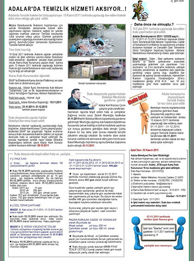 Belediye web sayfasında güncel ihale ilanız gözükmemektedir.Tesadüfen 2011 belediye ihaleleri ile ilgili bir araştırma yapılırken, 28.10.2011 tarihinde yeni ihale ilanınız gördük ve incelemeye başladık.İncelemelerimiz neticesinde bariz hatalar hakkında düzeltme ilanı verilmediğini gördük. Zeyilname düzenlenip düzenlenmediği hakkında bir bilgi ve belgeye rastlamadık. Bu sebeple Adalar Kent Konseyi Çevre Çalışma Grubu olarak , amacımız bulduğumuz hataları belediyemize ileterek en azından ihalenin yeniden iptal olmamasını sağlamaktır. İptal olması demek, 2,5 yılda yaşadığımız temizlik hizmeti olumsuzlukların tekrarını önümüzdeki yıllarda da yaşamaktır. Adalara layık bir temizlik hizmetinin yapılmasında destek olmak görevimizdir.
