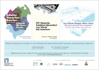 10 Eylül 2010 tarihinde açılan Adalar Müzesi, İstanbul’un ilk kent müzesi olarak bir yıl içinde hızlı bir büyüme gösterdi. Kalıcı koleksiyonlarının sergilendiği Büyükada Aya Nikola Hangar yarı yarıya büyüdü ve süreli sergilerin yapılabileceği yeni bir salona kavuştu. Müzenin yeni galerileriyle birlikte, süreli sergiler salonunun ilk sergisi olan “Adalar, Yazarlar, Şairler – Mitostan Edebiyata” 25 Kasım 2011 Cuma günü açılıyor.