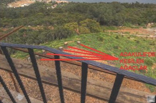 Çünkü haberdeki fotoğrafı bir yerden kesmiş; fotoğraftaki kütükleri Adakule’nin çevre düzenlemesini yapmadan önce Aşıklar Yolu civarında devrilmiş olan ağaçlardan bölümleyip yoluna koymuştuk evvelce, oturak olarak kullanılsın diye ancak bazı yabaniler bu kütükleri yoldan aşağıya yuvarladılar. Biz de bu kütükleri alıp Adakule’nin etrafında doğal görüntü olsun diye bırakmıştık. O sırada yolu düşen bir vatandaş çekmiş bu fotoğrafı ya da bizim adakule.org sitemizdeki detay panodan kopyalamış. Kulenin etrafı 1980 yıllarında yanmış yani çevresinde bir tane dahi 10 ‘kuturu’nda yani ‘gövde çapı’nda bir ağaç yoktu hepsi çalıydı ve biz çalıları da koruduk çünkü rüzgârı kesiyordu. Kule’nin etrafına da 30 adet zeytin ağacı diktik ki gölge yapsın, meyvelerini kurtlar kuşlar yesin hem de rüzgârı kessin diye.