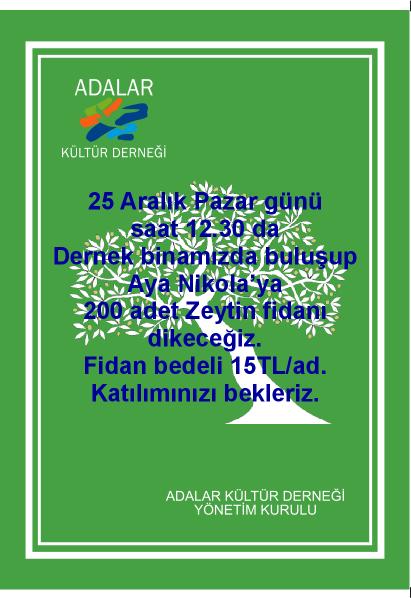 Yer: Dernek binasından hareketle Aya Nikola 200 adet Zeytin Ağacı dikimi