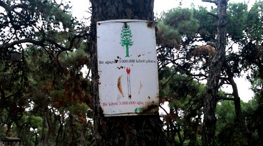 http://www.sikayetvar.com/sikayet/no/1014474], ‘Bu ağaçtan 3 milyon kibrit çıkar, bir kibrit 3 milton ağaç yaka’ yazan tabelanın ağaca acımasızca çakıldığı hatta bu çivilerin de paslandığı görülüyor. İşin daha da üzücü boyutu ise, bu levhaların sadece Büyükada ile sınırlı olmaması. Uzmanlar, kabuklarının ağaçları dış etkenlerden koruduğunu vurgulayarak, gövdeye kadar çakılan çivilerin geri döndürülemez hasarlara sebep olduğunu, özellikle çivilerdeki paslanmanın öz suyuna geçmesiyle ağacın kurumasına sebep olduğunu vurguluyorlar.