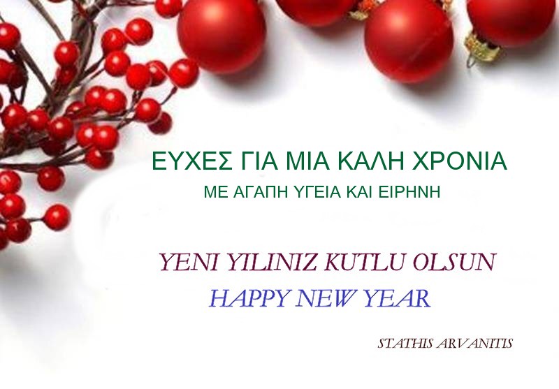 Tüm dünyanın, ülkemin, akrabalarımın ve değerli arkadaşlarımın yeni yılını kutlar, sağlık, mutluluk ve hayırlı kazançlar getirmesini dilerim.